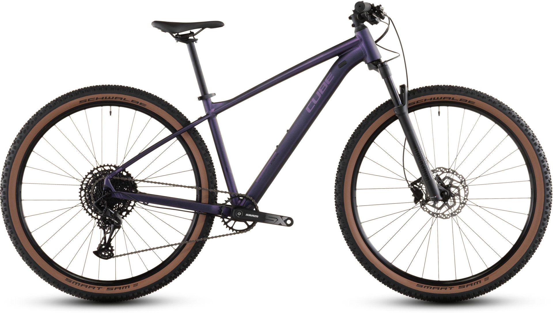 Mit seinem schlanken Chassis (nachrüstbar mit einer versenkbaren Sattelstütze) zieht das Attention SLX alle Blicke auf sich – und auch seine ausgesuchten Komponenten sind eine Klasse für sich. Dazu zählt eine einfach einstellbare Luftfedergabel von RockShox, die sämtliche Schläge und Ruckler auf dem Trail butterweich abdämpft und für 1a-Lenkpräzision sorgt. Die Sram Eagle SX 12-fach Schaltung überzeugt mit ihrer hohen Übersetzungsbandbreite, ist supereinfach zu bedienen und wechselt präzise von Gang zu Gang. Die hochwertige Ausstattung komplett machen leistungsstarke hydraulische Scheibenbremsen und maximal griffige 2.25 Zoll Reifen von Schwalbe. Keine Frage, dieses Bike kann schön und funktionell!