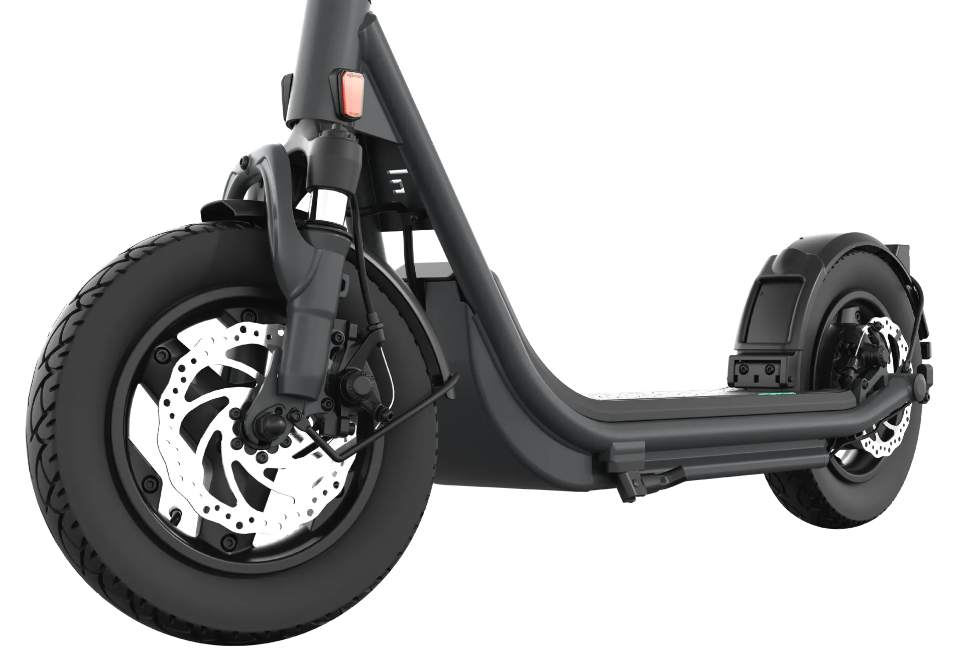 Um Asphalt, Kies oder Feuchtigkeit zu kontrollieren, schalten wartungsarme mechanische Scheibenbremsen schnell, sicher und konstant ein. Dank ihres 160-Millimeter-Durchmessers können Sie jederzeit kontrolliert anhalten.