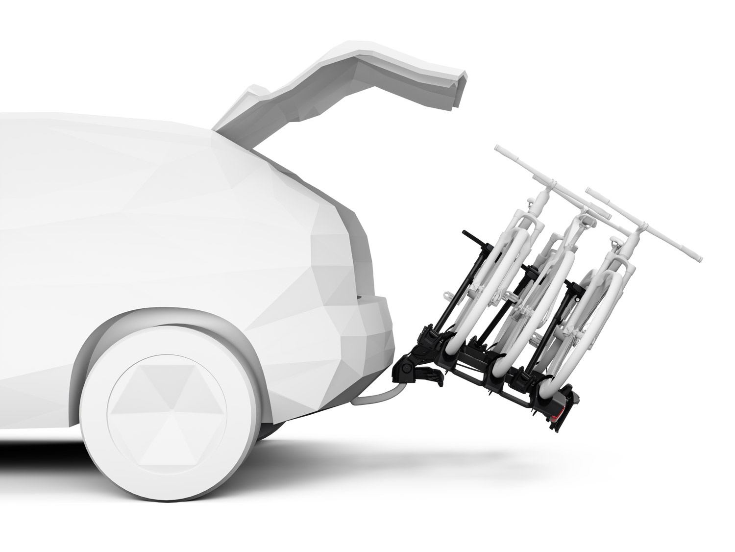 - Kippfunktion: Neigt sich beim Parken in Richtung des Fahrzeugs und ist somit ideal für den Stadtverkehr. Hinweis: Der Fahrradträger darf sich während des Fahrens nicht in aufrechter Position befinden; diese Funktion ist nur zum Parken von Fahrrädern